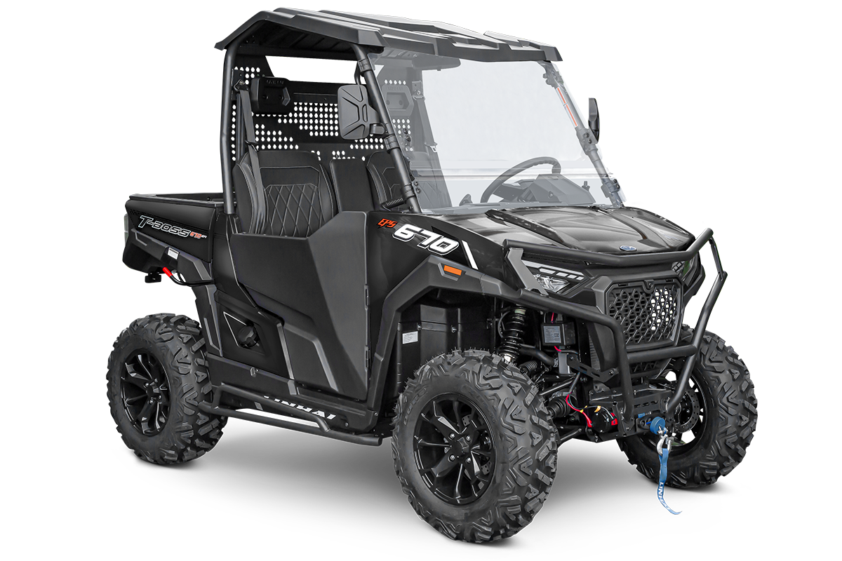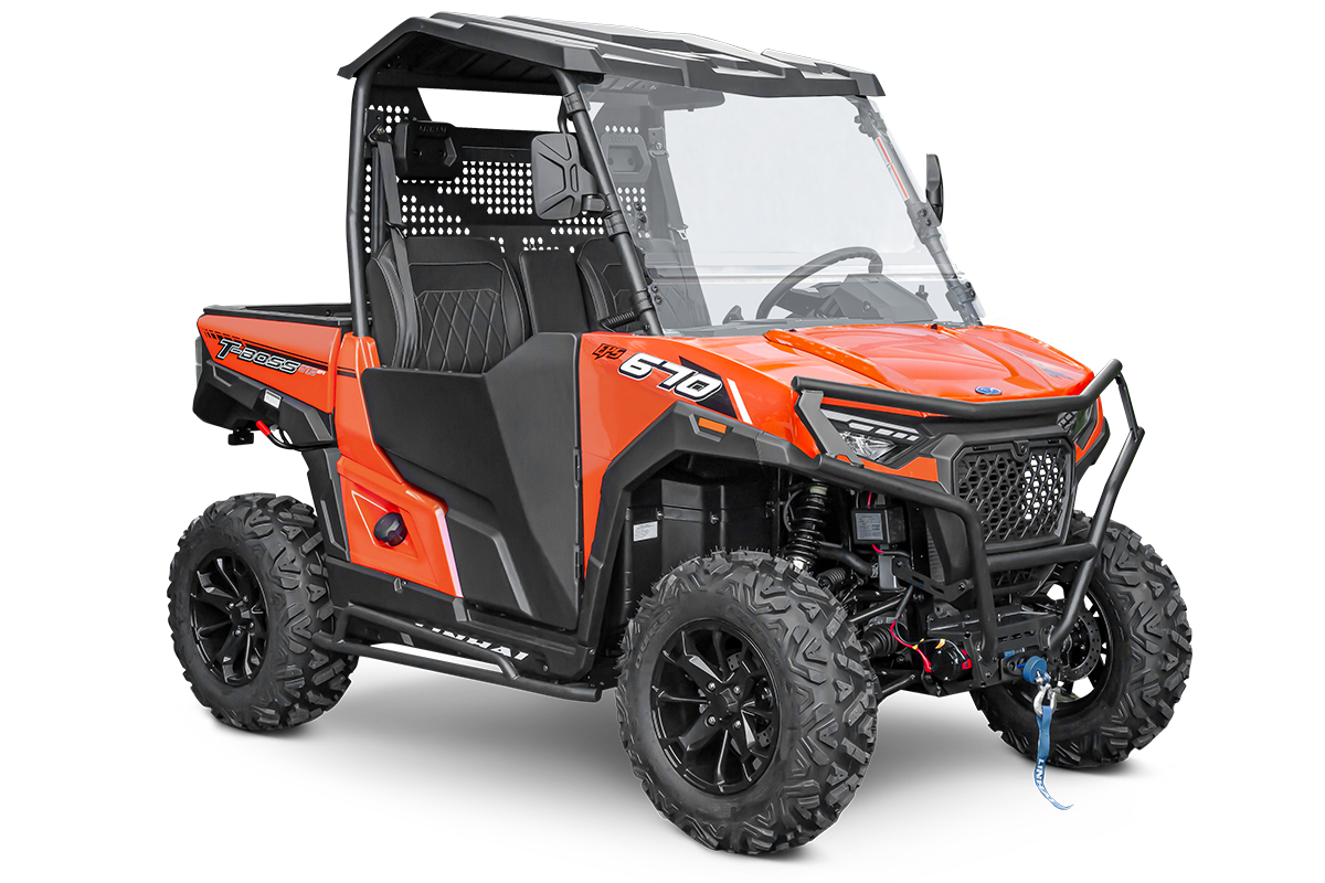 Linhai T Boss 670 EPS je nejnovější generace pracovního UTV s moderním robustním designem a vysokou užitnou hodnotou. Kombinuje spolehlivý výkon s úsporným provozem a je připraven na nasazení v zemědělství, lesnictví, stavebnictví i komunálních službách. Elektrický posilovač řízení EPS zajišťuje pohodlné ovládání v každé situaci a silný motor poskytuje dostatek síly pro tahání přívěsů i práci s těžkým příslušenstvím. O bezpečí a komfort posádky se starají odolné poloviční dveře a prostorný interiér.